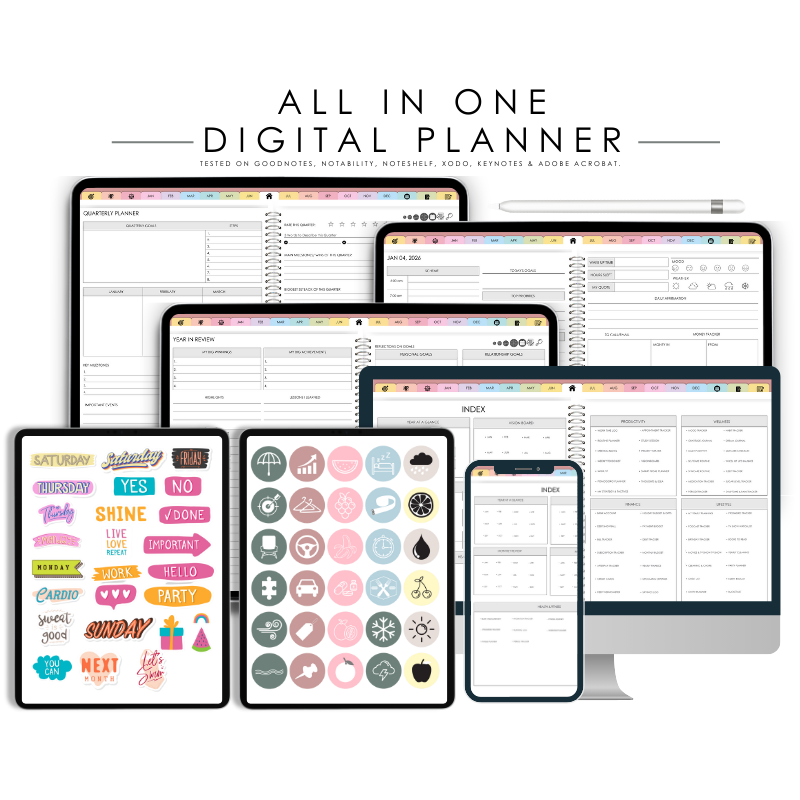 This digital planner is designed for maximum flexibility and convenience. It’s fully compatible with Apple (iPad, iPhone, Mac), Android tablets and phones, and Windows devices, making it perfect for users who plan across multiple platforms. Whether you prefer using an iPad with Goodnotes or Notability, a Samsung tablet with Samsung Notes, or a Windows device with Xodo or CollaNote, you’ll enjoy a smooth and intuitive planning experience.