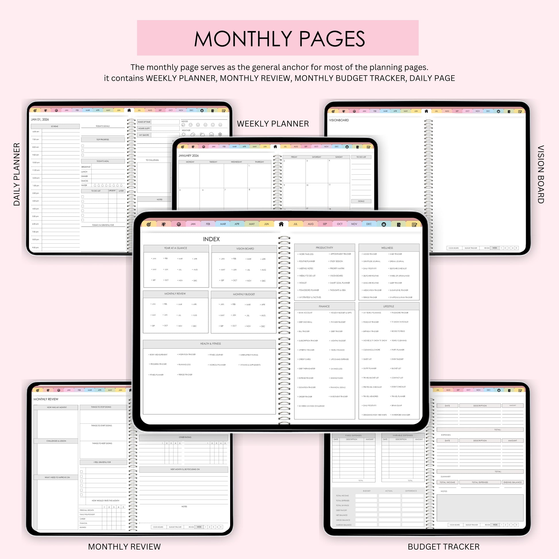 All-in-One Digital Planner | 2025 & 2026 | Pastel Landscape Layout with Bonus Sticker Pack – Productivity, Wellness, Finance & More