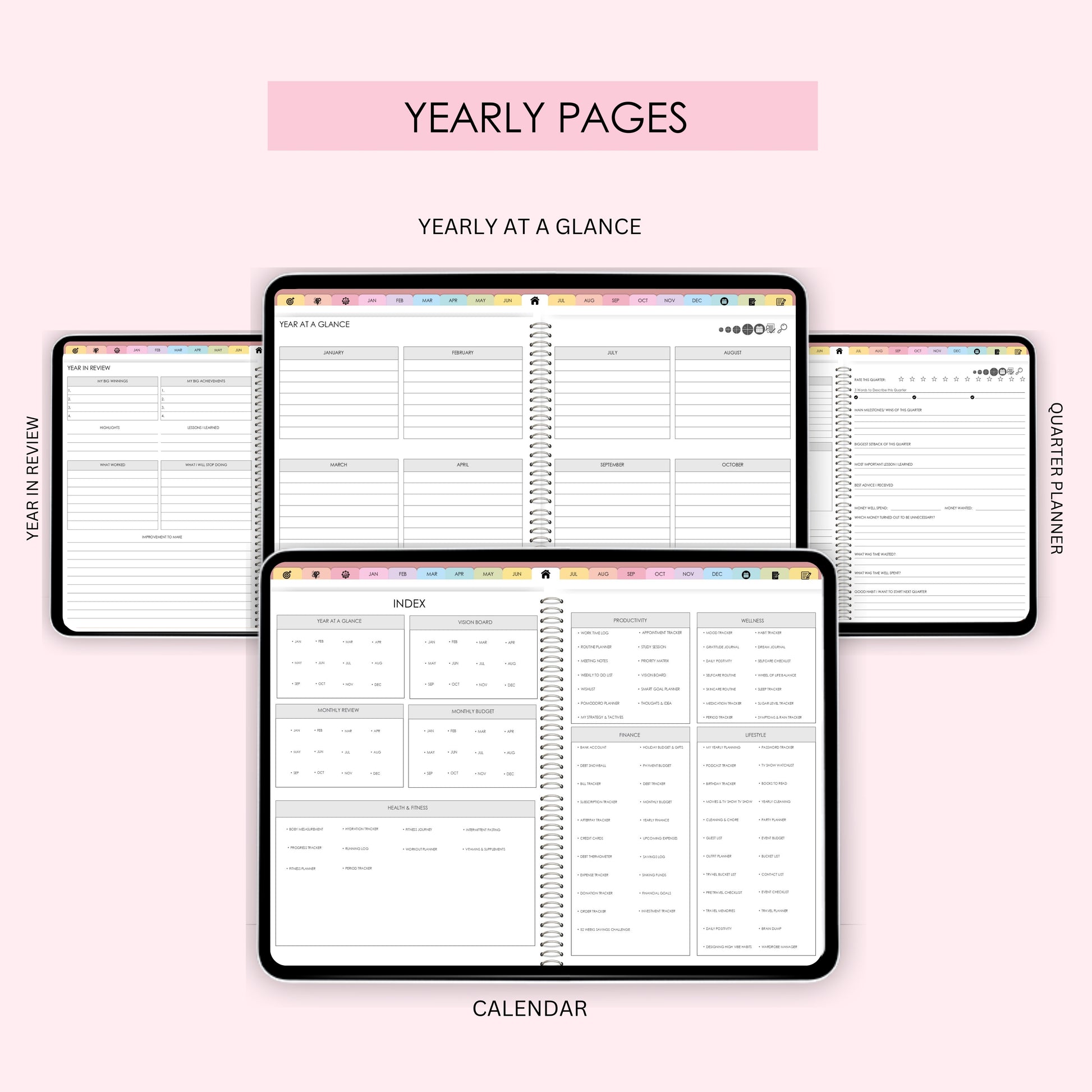 Our All-in-One Digital Planner is thoughtfully designed in a calming soft pastel palette and landscape layout, perfect for seamless use on tablets like the iPad, Samsung Galaxy Tab, and more. Whether you’re a goal-setter, creative, professional, or multitasking parent, this planner brings clarity and flow to every area of your life.